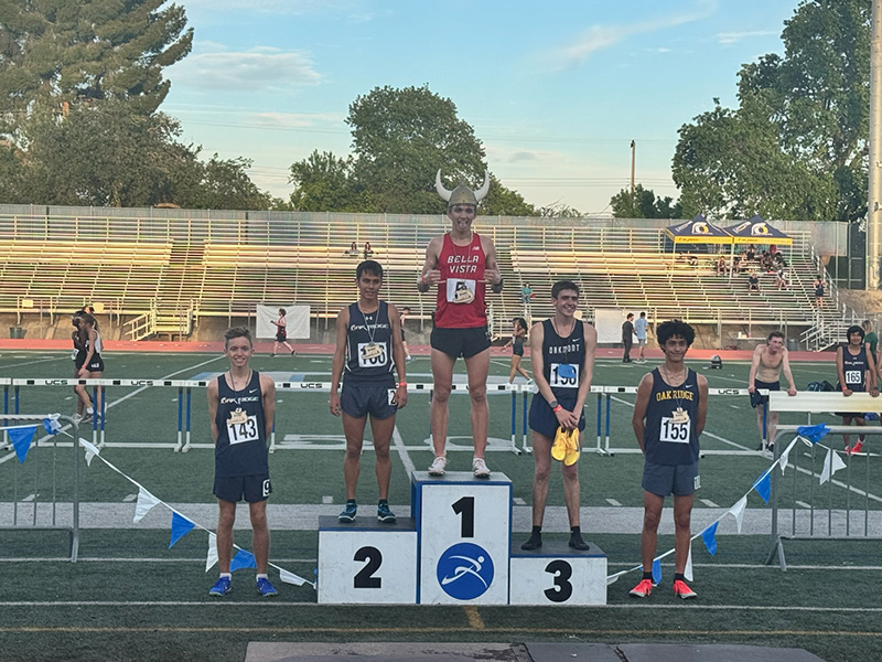 Valhalla Distance Meet (3-27-26): While the BV field athletes were at Granite Bay our distance crew were over at Oakmont High School for the Valhalla Distance Meet. The story in Roseville was the Bronco middle distance squad who posted a class record and four all time list times. Junior Calvin Fear ran a personal best 4:18.11 in the 1600 meters improving his all time list time and setting a junior class record in the process. The old record of 4:19 was held by Nick Sparks back in 1983. Tenth grader Lincoln Manweller also made it onto the 1600 meter all time list with a personal best 4:24.70 starting him off on the list at number 17 all time. In the two lap race sophomore Avery Berlier moved onto the 800 meter all time list running 2:25.66 debuting her at number 28 all time on the girls list. In the boys 800 meters seniors Jonah Wooden and Cade Rucker broke two minutes for the first time going 1:58.98 and 1:59.46 for 26th and 29th all time respectively.