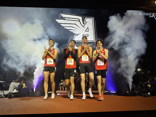 Our boys 4 x 800 relay team of Calvin Fear, Jonah Wooden, Cade Rucker and Lincoln Manweller ran an excellent time of 7:54.81 (video) on Friday night which placed them 12th in the invitational session.