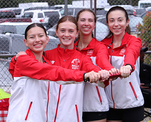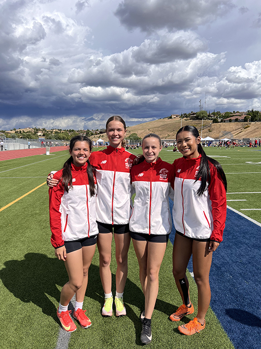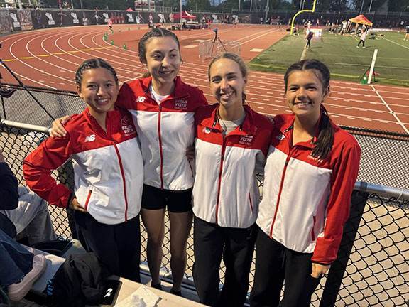 2025 4 x 800 (video) - From left - Sophia Pham (Class of 2026), Avery Berlier (Class of 2028), Giuliana Serafini (Class of 2028), Jayden Fritz (Class of 2026),