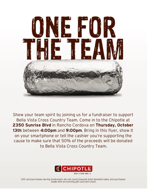 Pieology Fundraiser (2350 Sunrise Blvd, Rancho Cordova): August 25 from 4:00-9:00. This flier must be presented at time of ordering in order for us to receive credit. As a refresher, we earn 20% of the sales from that night.