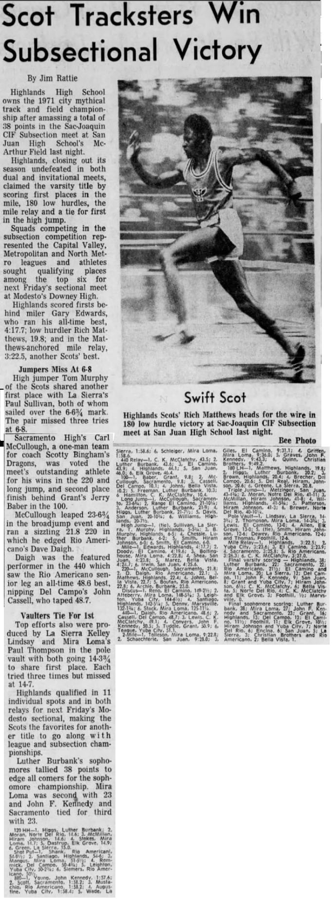 Meet: Sac Joaquin Subsection II FinalsĀ Date: May 22, 1971 Location: San Juan High School