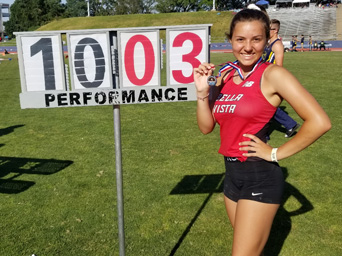 The next scoring opportunity for BV was the 100 hurdles and it was Isabella Chilcutt's turn once again to see if she could contribute. A strong headwind made it a tough race but Chilly was able to run one of her best races clocking 16.56 (video) placing 5th and putting two more points on the board for the Broncos. Right about the same time Chilly was running the 100 hurdles, Rachel Radcliff was bringing home second place in the triple jump going 35-07 and piling up 8 more points. At this point the Broncos were looking strong with 61 points.